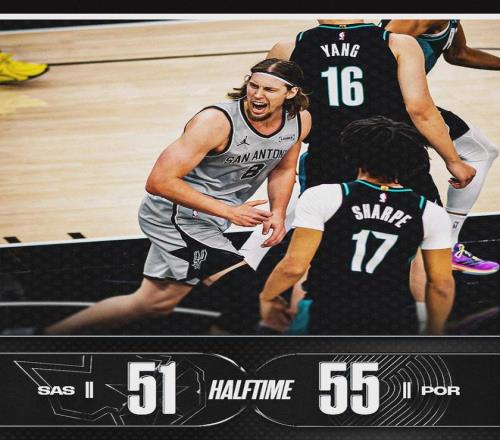 第二節(jié)初段,開拓者一度領先到15分。夏普開啟無效單打模式,首節(jié)投籃5中1,次節(jié)5中0。夏普上半場10中1,僅得2分3失誤。馬刺防守反擊不斷迫近比分。楊瀚森第二節(jié)打了1分多鐘,一直被教練安排蹲底角,沒有任何數(shù)據(jù)進賬。