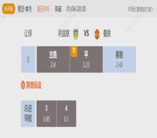 本場機構普遍給出平手的指數,也不看好曼聯能客場輕松帶走3分,綜上我看好利茲主場能守住一場平局。