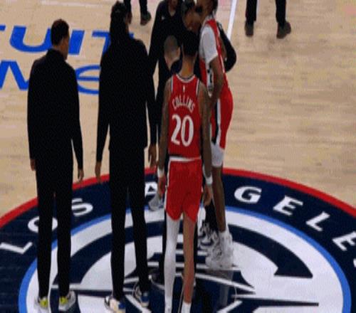 他在爭搶球權的時候被普里查德壓到膝蓋