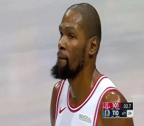 杜蘭特看著頭頂大屏幕的比分,無言