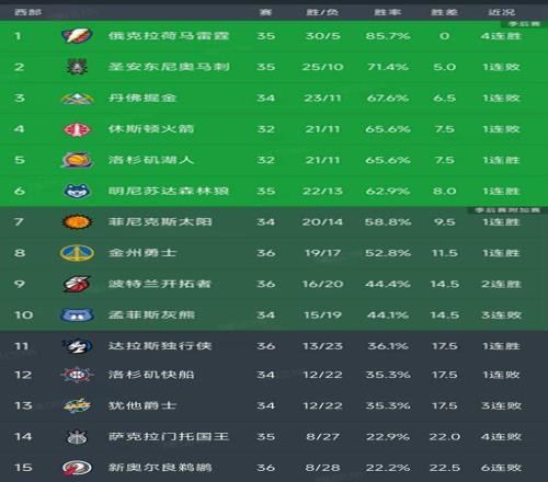 西部最新積分榜