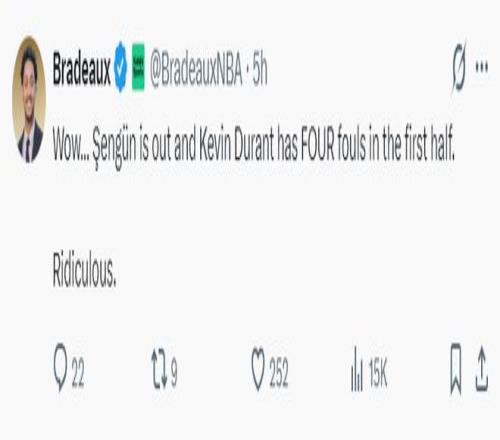 火箭記者Bradeaux寫(xiě)道:開(kāi)場(chǎng)我們就折損了申京,而杜蘭特半場(chǎng)就吃下4個(gè)犯規(guī),太荒謬了。