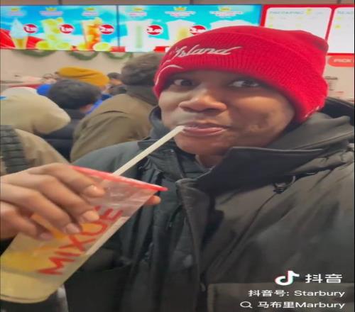 視頻顯示,馬布里點(diǎn)了一杯售價1.99美元的檸檬水,以及一杯茉莉奶綠。他在視頻中表示:“我在紐約也能喝到中國的飲品了,這里有1.19美元的冰淇淋、1.99美元的檸檬水,這個價格在紐約是聞所未聞的。”