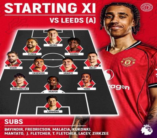 曼聯(lián)首發(fā):拉門斯/約羅、希文、利桑德羅·馬丁內(nèi)斯/達(dá)洛特、烏加特、卡塞米羅、盧克·肖/多爾古、庫尼亞/舍什科