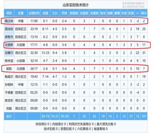 值得一提的是,從比分上,山東隊似乎是贏得有點輕松,畢竟,最后是贏了13分。但是,從整個過程來看,山東隊雖然是拿下了這場比賽勝利,但是,卻贏得十分慘烈,因為,整場比賽,山東隊的犯規數達到了27次,球隊有4人被罰下場,其中,有2人被直接驅逐出場。