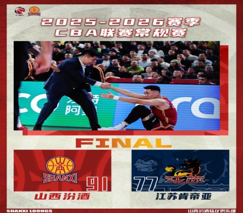 北京時間2026年1月4日19:35,2025-2026賽季CBA聯賽第十輪繼續進行,山西汾酒主場對陣江蘇肯帝亞。兩隊歷史上共交手39次,山西汾酒23勝16負,上賽季常規賽兩隊交手2次,山西汾酒2勝0負。本場比賽,山西隊雖然一直保持領先,但在籃板球的拼搶和保護上依舊存在問題,仍需賽后進一步總結,最終全場比賽結束,山西汾酒91:77戰勝江蘇肯帝亞。