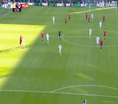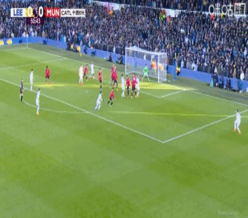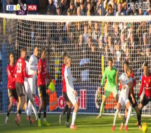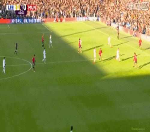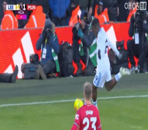 第62分鐘,海文防守不利,阿倫森小角度破門,利茲聯1-0領先曼聯!