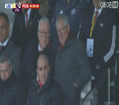 第13分鐘,鏡頭給到看臺,弗格森現場觀戰德比