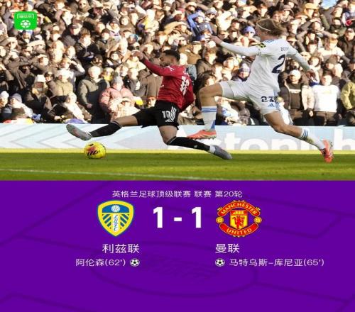 北京時間1月4日,英格蘭足球超級聯賽第20輪展開角逐,利茲聯坐鎮主場迎戰曼聯。上半場庫尼亞精彩破門,但此前隊友越位,進球無效。下半場海文防守不利,阿倫森小角度破門,之后齊爾克澤直塞妙傳,庫尼亞推遠角得手。最終曼聯客場1-1戰平利茲聯。