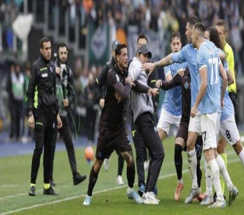 其中馬佐基和馬魯西奇扭打在一起,56歲那不勒斯主帥孔蒂不得不沖進場內,奮力拉開兩人。最終,馬佐基和馬魯西奇雙雙被紅牌罰下場。雙方此役共計吃到3紅6黃,其中拉齊奧2紅5黃。