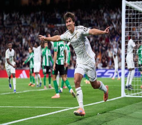 在2025-26賽季西甲第18輪,皇家馬德里主場對陣皇家貝蒂斯。頂替姆巴佩首發出場的貢薩洛-加西亞在打入西甲處子球之后,凌空掃射破門,皇馬生涯首次完成雙響炮。
