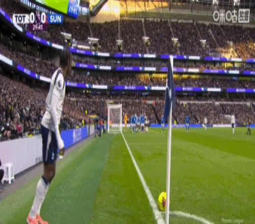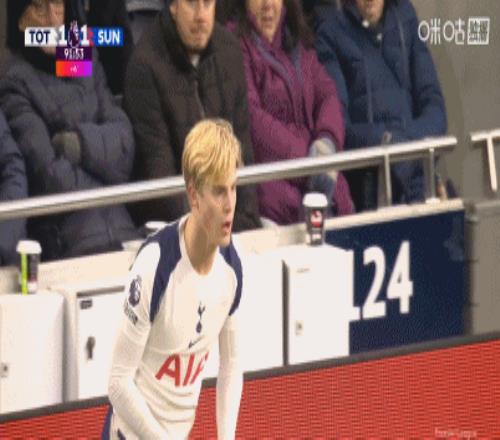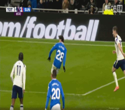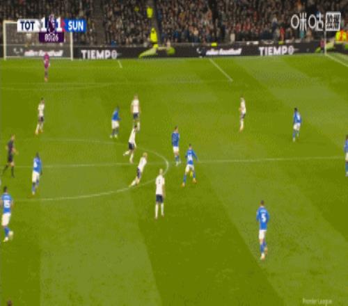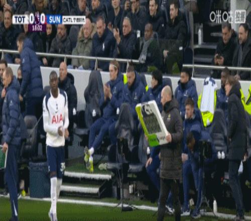 第19分鐘,熱刺被動調整,庫杜斯傷退,穆阿尼替補上場