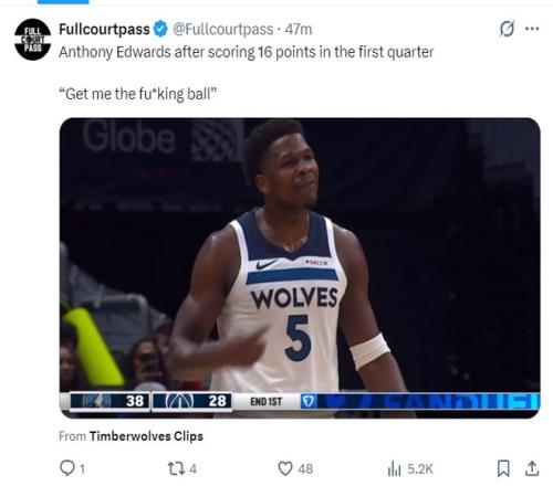 但賽后美媒Fullcourtpass解讀了在愛德華茲首節拿到16分后他的口型,他朝著隊友狂噴:把那該死的球給我,FUXKing。。。。。。(他這個性格的確有些問題,此前對陣老鷹末節被打崩后他直接進入更衣室也遭到質疑)