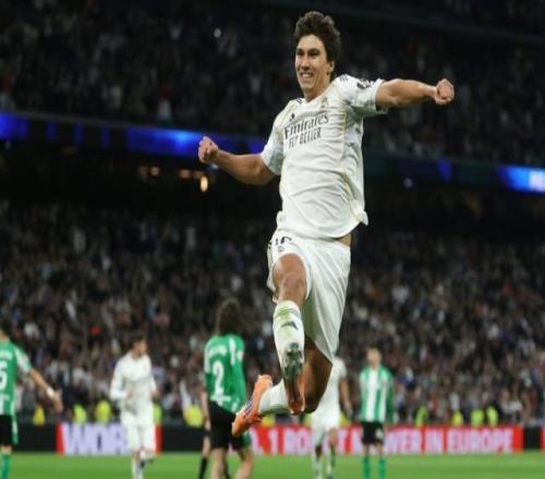 在貢薩洛之前,皇馬上一個能夠在西甲賽場上演“完美帽子戲法”,即左右腳和頭球各攻入一球的球員,還要追溯到2018年的C羅。出身皇馬青訓的貢薩洛本場只是第一次在西甲賽場進球,便上演如此神跡。貢薩洛本場的帽子戲法含金量相當高,他先是接到羅德里戈開出的任意球,頭球首開紀錄,用最簡潔的方式為皇馬打開勝利之門。下半場伊始,在貝蒂斯調兵遣將意圖扳平比分之際,又是貢薩洛干脆利落的右腳抽射破門,為皇馬基本鎖定勝局。最后時刻貢薩洛在禁區內左腳腳后跟精妙破門,徹底讓伯納烏沸騰,這位小將第一次在伯納烏球場有了巨星級別的待遇,全場球迷高唱他的名字,并在他被換下時送上整齊的掌聲。