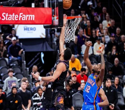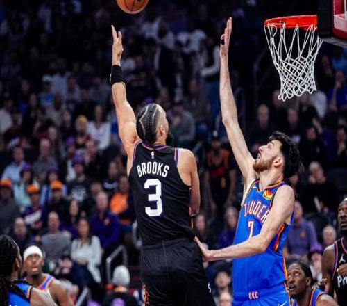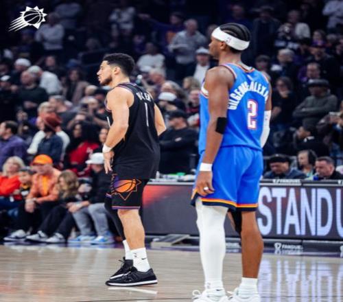 這一個比賽日,雷霆奔赴菲尼克斯客場挑戰太陽,本場比賽客場作戰的雷霆一度靠著出色的整體進攻,建立起了18分的領先優勢,不過太陽沒有放棄,頑強抹平分差,并且靠著布克最后0.7秒的三分絕殺,以108-105終結了面對雷霆的八連敗。