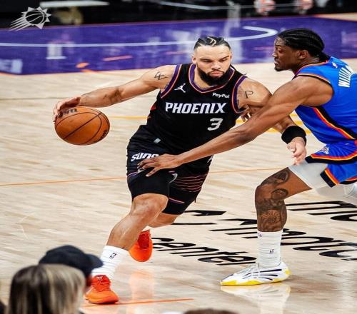 末節決戰,OKC提升防守強度,并且依靠著防守反擊重新取得比分領先。狄龍布魯克斯連續單打取分,幫助菲尼克斯緊咬比分。菲尼克斯在布克、狄龍的帶領之下,轟出了11比1的攻勢。