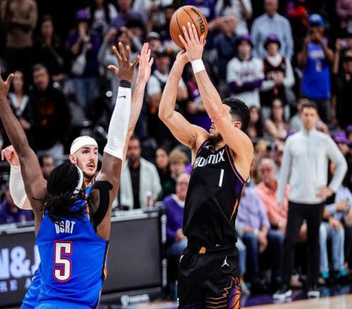 北京時間1月5日,NBA常規賽火熱進行。太陽坐鎮主場挑戰衛冕冠軍雷霆,該場比賽是雙方本賽季的第三次交手。前兩戰斗取得了勝利的OKC,目前斗志正盛。豪取4連勝的雷霆,戰績領跑西部賽區和聯盟。哈爾滕施泰因、杰林威廉姆斯傷停,雷霆的首發五虎是亞歷山大、霍姆格倫、杰倫威廉姆斯、華萊士與多爾特。杰倫格林、格雷森阿倫傷停,菲尼克斯的首發五虎是德文布克、狄龍布魯克斯、羅伊斯奧尼爾、吉萊斯皮與馬克威廉姆斯。兩大西部勁旅,在此役展開了激烈爭奪。比賽的走勢,也出現了多次轉折。雙方纏斗至最后時刻,才得以分出勝負。