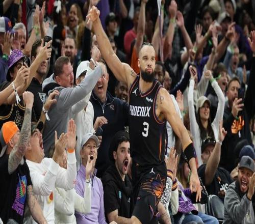 決勝時刻,布克面對雙人防守轟進遠投,幫助太陽絕殺了對手。依靠著布克的絕命遠投,菲尼克斯逆轉險勝。