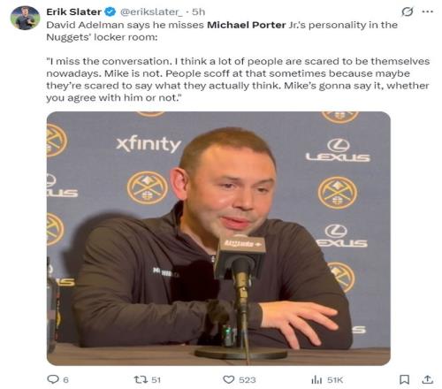 阿德爾曼也談到小波特之前在掘金更衣室的一些事件,他表示自己還很懷念,不過休賽期那筆交易其實對籃網、掘金都有好處。