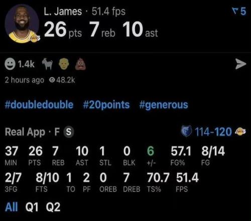詹姆斯今天沖擊力極強(qiáng),全場(chǎng)存在拉滿(mǎn)