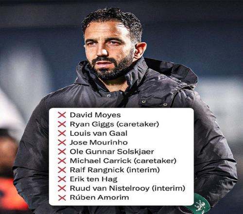 2024年11月,阿莫林接替滕哈格,出任曼聯新帥,帶隊1年1個月25天,執教63場比賽,僅取得25勝15平23負的戰績,上賽季,俱樂部更是創造了恥辱性的第15名排名。