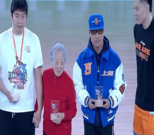 王哲林作為現任隊長獲贈象征上海男籃精神的金色籃球。