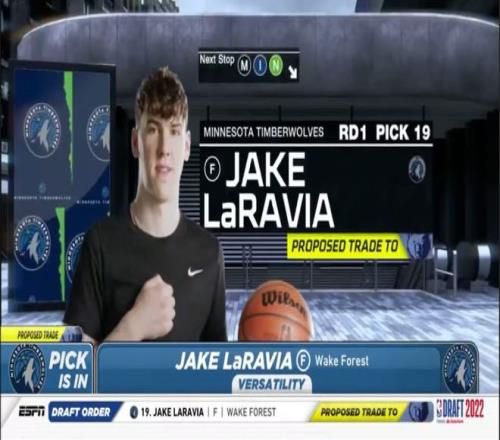 時間回到2022年選秀大會,拉拉維亞在首輪第19順位被森林狼選中,隨后就被交易到了孟菲斯灰熊。