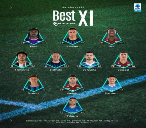 意甲第18輪最佳陣容:勞塔羅、澤林斯基、麥肯尼入選 懂球帝 2026-01-06 01:13:47 北京時間1月5日,意甲官方公布了聯賽第18輪的最佳陣容,勞塔羅、澤林斯基、麥肯尼入選。守門員:法爾科內(萊切)后衛:斯卡爾維尼(亞特蘭大)、馬里潘(都靈)、拉赫馬尼(那不勒斯)中場:麥肯尼(尤文)、澤林斯基(國米)、達庫尼亞(科莫)、卡薩代伊(都靈)前鋒:莫伊塞-基恩(佛羅倫薩)、勞塔羅-馬丁內斯(國米)、阿利烏-恩吉(都靈)意甲免費觀看_馬尼免費觀看_馬里免費觀看_意甲高清在線_馬尼高清在線_馬里高清在線 意甲 馬尼 馬里 勞塔羅 麥肯尼 都靈隊 澤林斯基 佛羅倫薩 馬丁內斯 弗拉基米爾·澤連斯基 上一篇: 阿達尼贊揚澤林斯基球員表示重新找回笑容渴望享受足球_意甲直播 下一篇: 意媒:凱利和小孔塞桑今日進行了單訓,大概率缺席對陣薩索洛