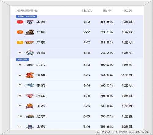 ③、青島隊主場落敗,8勝3負仍然排名第4位,到身后的北京隊只要下輪獲勝,有機會直接沖上榜首。