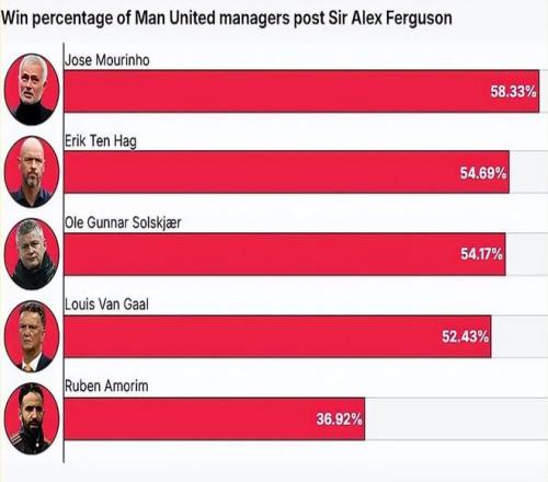 阿莫林下課沒有什么可以抱怨,他是隊史歷任正式主帥中勝率最低的一個。但人們不禁懷疑:曼聯主帥是不是真的成為一份「有毒」的工作。已經有超過10位不同主帥試圖帶領紅魔重現往日輝煌,但最終均以失敗告終。