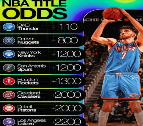 1月5日,雅虎更新NBA最新奪冠賠率,目前雷霆以+110(100得110)遙遙領先,掘金和尼克斯緊隨其后!