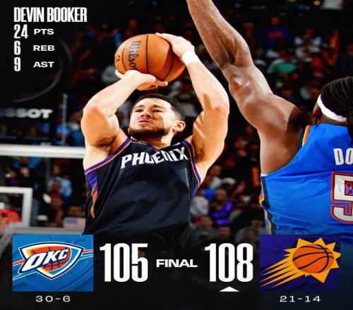 布克三分絕殺 太陽送雷霆第6敗