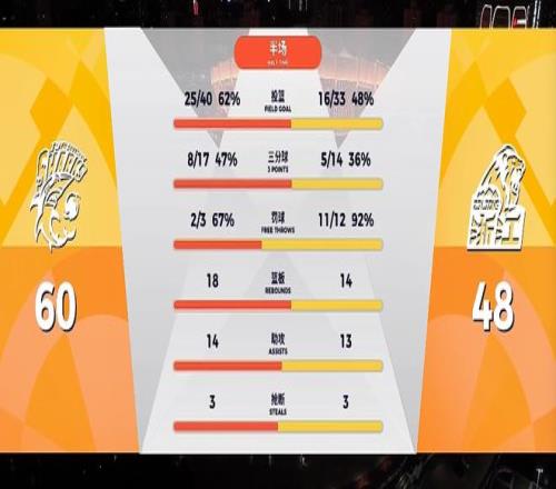上半場最后時刻,劉錚和古德溫接連命中三分!第二節結束,上海男籃以60-48領先對手12分進入更衣室。