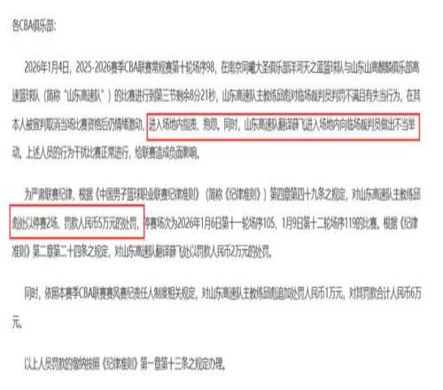 根據CBA官網給出的罰單公告,CBA公司對邱彪對臨場裁判員判罰不滿且有失當行為,在其本人被宣判取消當場比賽資格后仍情緒激動,進入場地內指責、抱怨。同時,山東高速隊翻譯薛飛進入場地內向臨場裁判員做出不當舉動。以“上述人員的行為干擾比賽正常進行,給聯賽造成負面影響”為由。