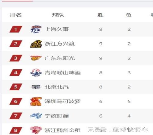 排在積分榜第7名的是黑馬寧波隊,截止到目前,他們的戰績是6勝4負,由于少賽一輪的緣故,寧波隊在排名上稍微吃虧。而積分榜第8名則屬于浙江隊,在經歷了賽季初的低迷后,浙江隊已經漸入佳境,這一輪爆冷絕殺廣東隊后,他們的戰績變成5勝6負,排在積分榜第8名。積分榜第9名則屬于山西隊,他們的戰績則是5勝5負。四冠王遼寧隊,他們的排名又下滑了一個身位,以5勝5負,排在積分榜第10名。