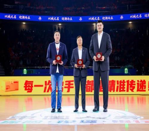 李秋平、姚明、章文琪三位俱樂部功勛教練員、運動員被授予功勛紀念章