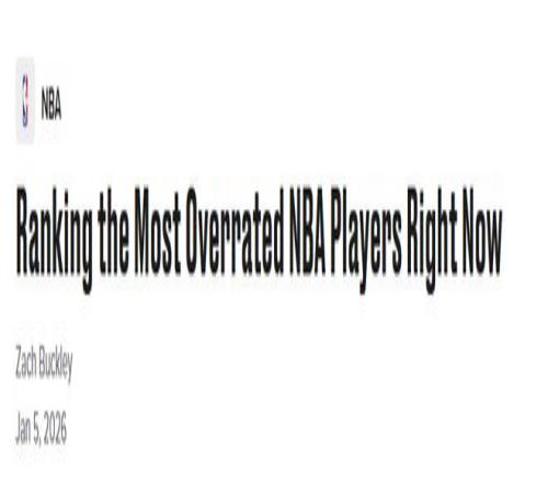 北京時間1月6日,知名美媒Bleacher Report評出了當今聯盟最被高估的五名球員。核心評判標準是:大眾對這些球員的期待與追捧,遠超其實際賽場表現和對球隊贏球的貢獻值。以下是倒序揭曉和解析——