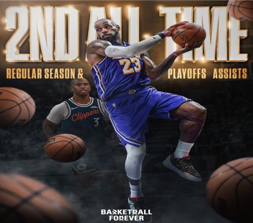 此役勒布朗的歷史總助攻還超過了克里斯-保羅升至歷史第二位,他也是NBA歷史首位得分第一+助攻第二的球員,41歲的他即將打破51000分大關。