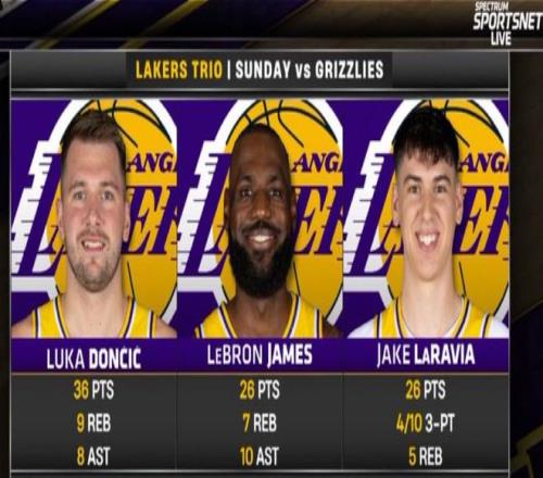 湖人逆轉16分擊敗灰熊,湖人隊三人拿到25+(東契奇36分、詹姆斯26分、拉拉維亞26分),此役后湖人已經重返西部第三,勒布朗-詹姆斯打出他41歲后首個25+10+5,這位41歲的老將又創造了歷史性的時刻。