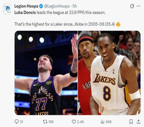 6.東契奇場均33.6分是05-06賽季湖人隊史后最高。