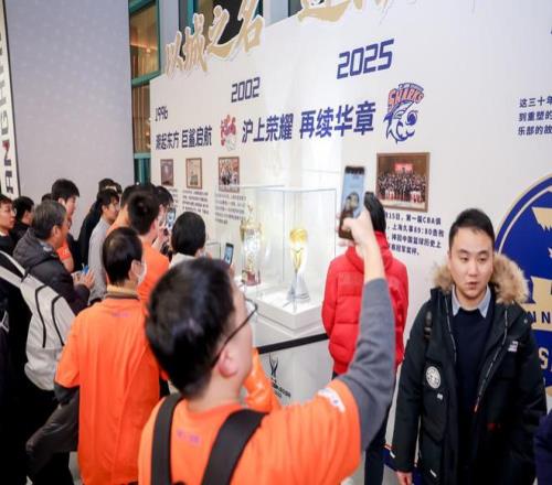 場館內,30周年紀念T恤與泛黃的舊球衣交相輝映;環廊里,“以城之名,迎潮而立”特展前圍滿了駐足的人群,2002年CBA總冠軍獎杯與2025年CBA俱樂部杯冠軍獎杯在展柜里靜靜對望,泛黃的紀念郵票、比賽票根將三十年時光拉得觸手可及。