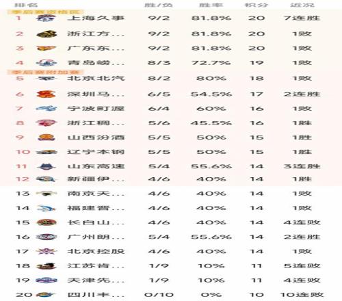 北京時間1月6日,昨晚的CBA常規(guī)賽第11輪結(jié)束了三場比賽,我們看看最新積分榜變動!