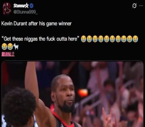 在命中了絕殺之后,杜蘭特直接怒吼:“讓這些黑鬼滾出去”。