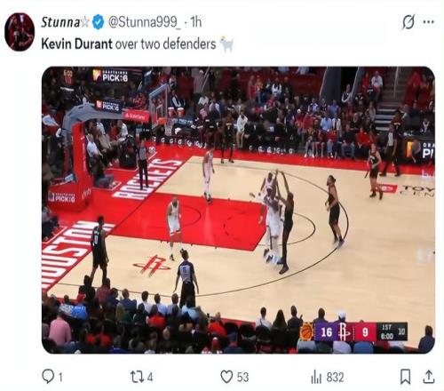 賽后杜蘭特也直接登上了全美體育熱搜第一的位置,死神的鐮刀不斬?zé)o名之輩。