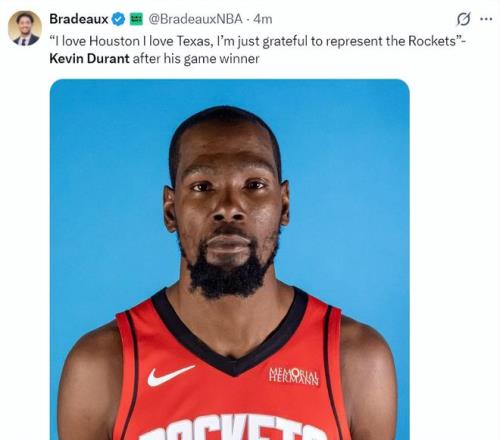 賽后杜蘭特接受采訪:我愛(ài)休斯頓,我愛(ài)德克薩斯州,我很慶幸能代表火箭隊(duì)出戰(zhàn)。