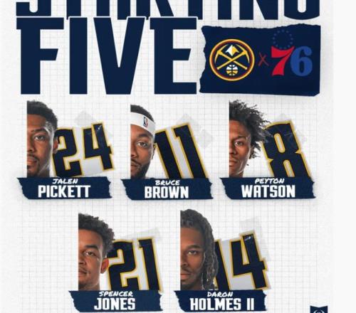 首發陣容方面,掘金隊這邊,除了約基奇、布勞恩等5大主力受傷缺戰,穆雷也選擇輪休,總計8人缺席,教練排出的三陣首發五人組為:皮克特、布魯斯-布朗、沃特森、斯賓塞-瓊斯、霍姆斯;76人這邊,首發陣容則為:馬克西、埃奇庫姆、保羅-喬治、巴洛、恩比德。