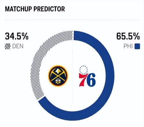 賽前,美媒ESPN對本場比賽進行了勝率預測,殘陣掘金隊勝率僅有34.5%,劣勢明顯,76人的勝率則高達65.5%。