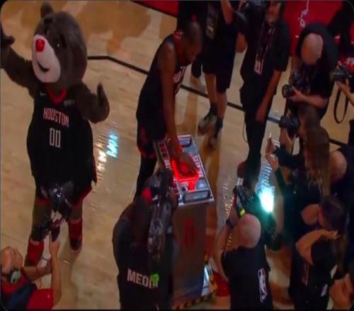 在吐槽完老東家后,杜蘭特也表達了對于新東家火箭隊的滿意,后者也在賽后安排杜蘭特按下“引擎”觸發(fā)“火箭升空”特效來慶祝球隊拿下勝利。