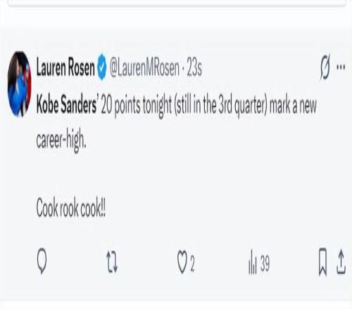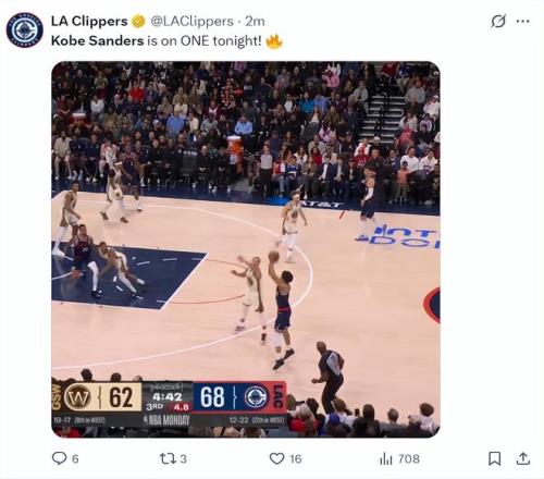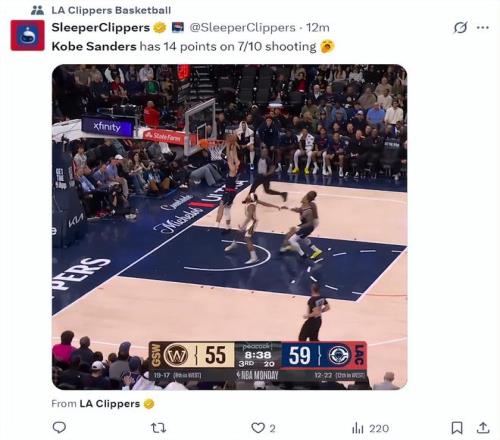 快船記者Lauren Rosen:桑德斯三節拿到20分已經創造生涯新高,微波爐球員。