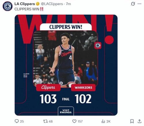 北京時間1月6日,快船以103-102拒絕勇士逆轉避免連敗。這場比賽哈登因為肩膀酸痛缺席,泰倫盧讓新秀科比-桑德斯打先發二號位,鄧恩移動到一號位,沒想到這位也叫科比的23歲大齡新秀迎來了生涯之夜,全場比賽拿到20+7創造生涯新高,快船贏球海報還是這位23歲的年輕人。